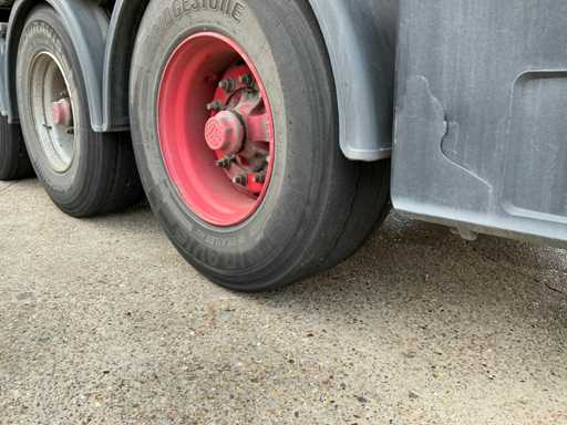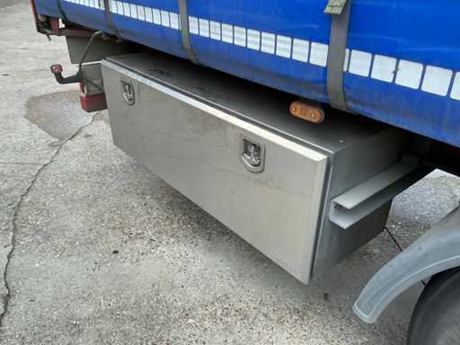 Maximale Masse 41.000 kg, Radstand 879 cm, ausgestattet mit luftgefederten BPW Ecoplus-Achsen, 1 Achse als Auftriebsachse, Schiebeplanen, Schiebedach,