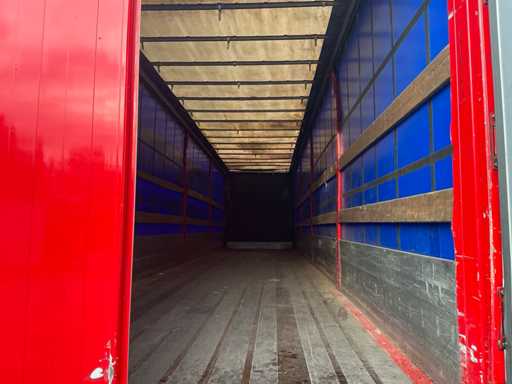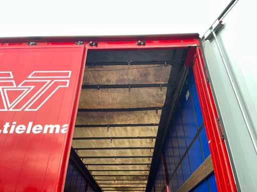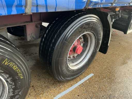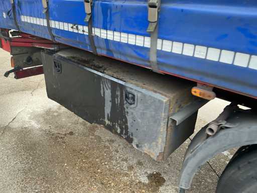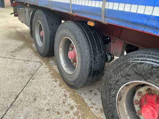 Maximale Masse 40.000 kg, Radstand 879 cm, ausgestattet mit luftgefederten BPW Eco Plus Achsen, wobei die erste Achse als Auftriebsachse, Schiebedach und Vorhänge ausgestattet ist