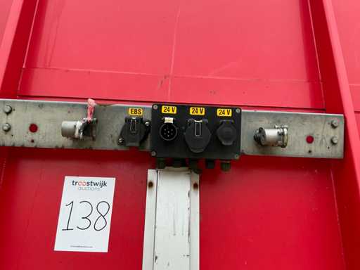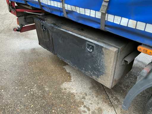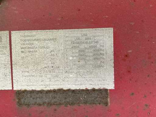 Maximale Masse 40.000 kg. Radstand 879 cm; Abstandskupplung zum Heck des Fahrzeugs 1200 cm; Achse 1 ausgeführt als Hebelachse; Ausgestattet mit BPW Eco Plus-Achsen, Vorhängen und Sonnendach