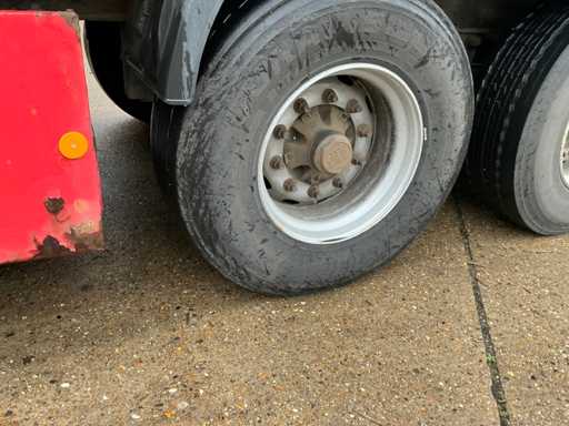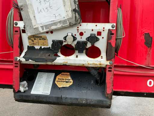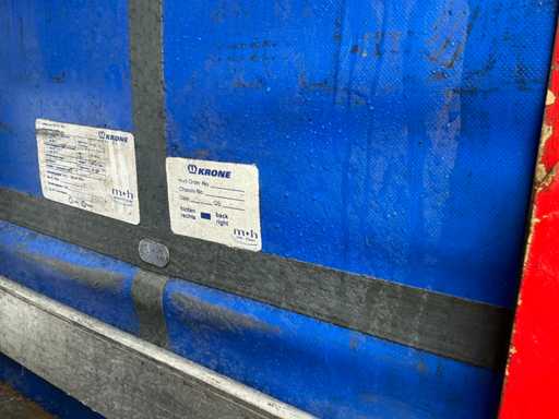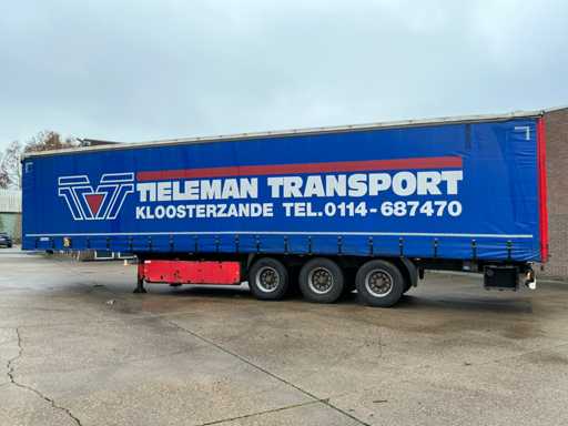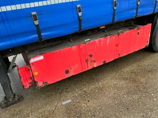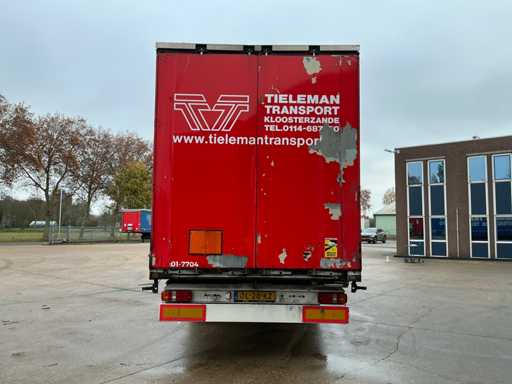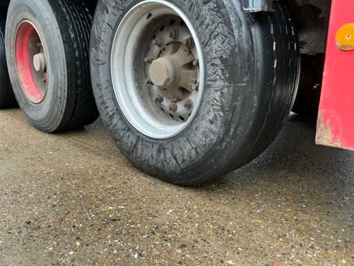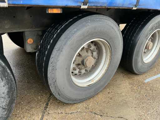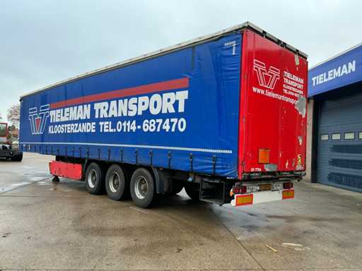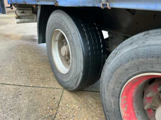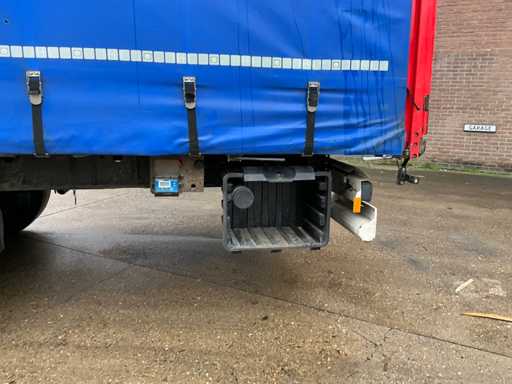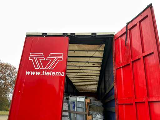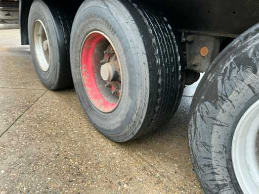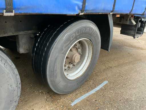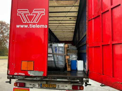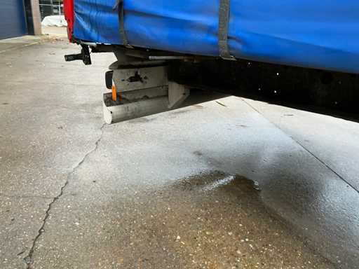 Maximale Masse 41000 kg, Radstand 879 cm, ausgestattet mit luftgefederten BPW-Achsen, schiebbaren Planen, Schiebedach und Palettenkasten, ohne den Inhalt