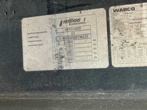 Maximale Masse 43.000 kg, Radstand 879 cm, die erste Achse ist eine Hubachse; Abstandskupplung zum Heck des Fahrzeugs 1200 cm; Ausgestattet mit luftgefederten BPW Eco Plus-Achsen, Vorhängen und einem Schiebedach.