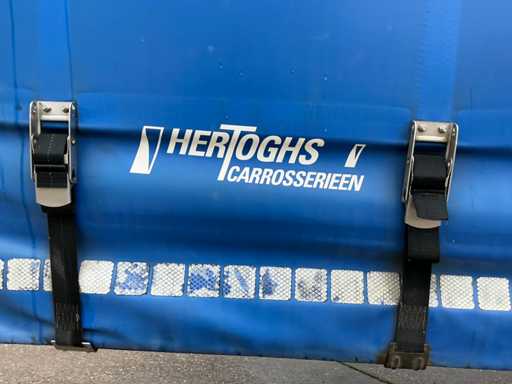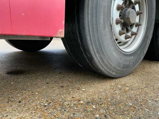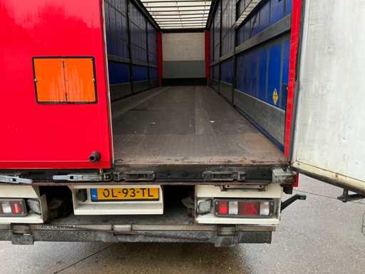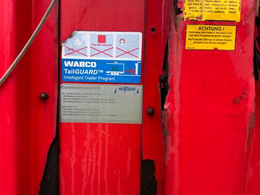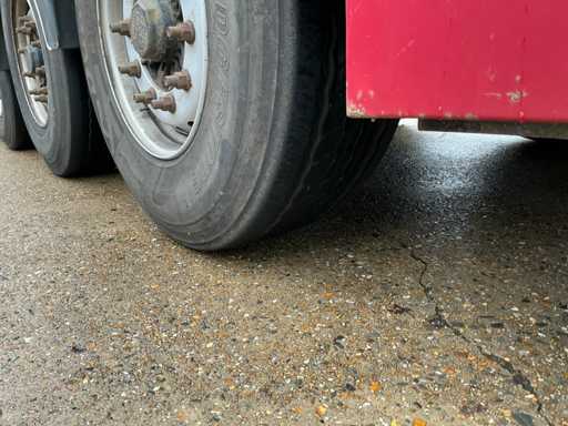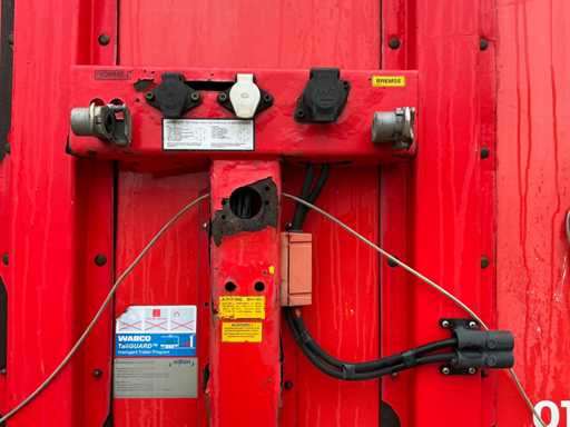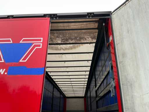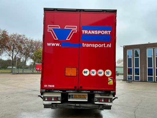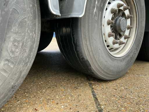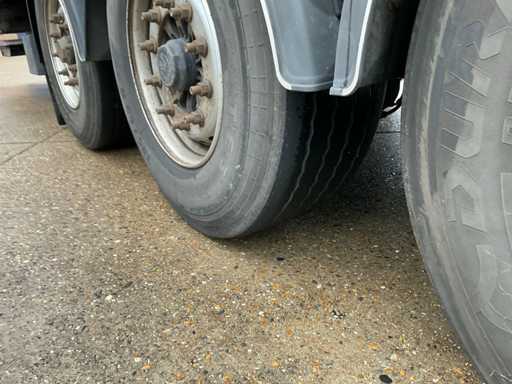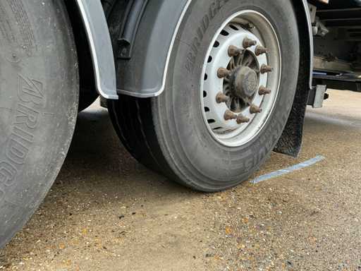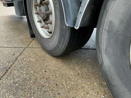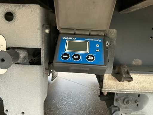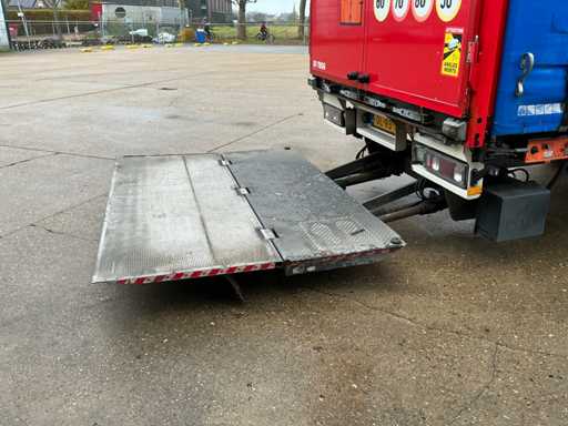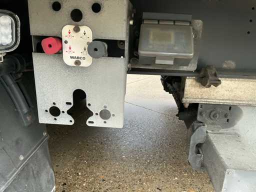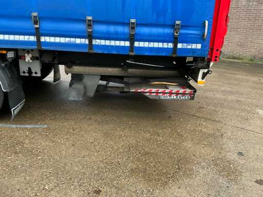 Maximale Masse 43000 kg, Radstand 879 cm, ausgestattet mit Luftfederung BPW-Achsen, Dhollandia DHSMR20 klappbare Heckklappe, Reifengröße 385/65R22.5
