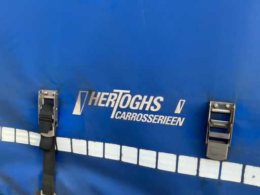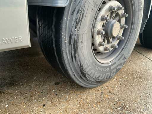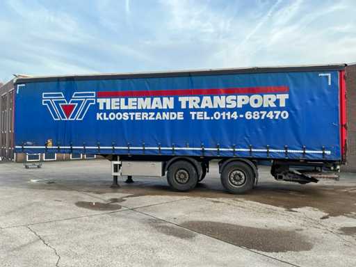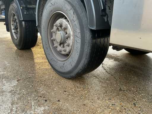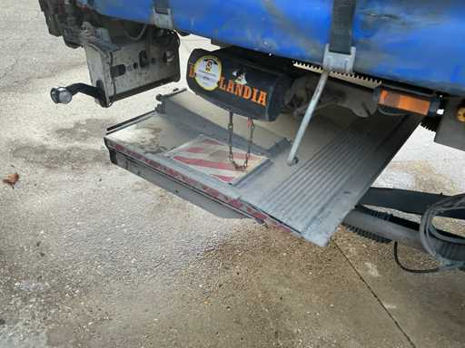 Maximale Masse 33000 kg. Radstand 677 cm, ausgestattet mit Luftfederung BPW Eco plus Achsen, deren Hinterachse mit Zwangslenkung belastet ist, Dhollandia unterlaufbare Heckklappe, Aluminium-Seitenbretter, Vorhängen und Schiebedach
