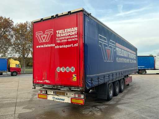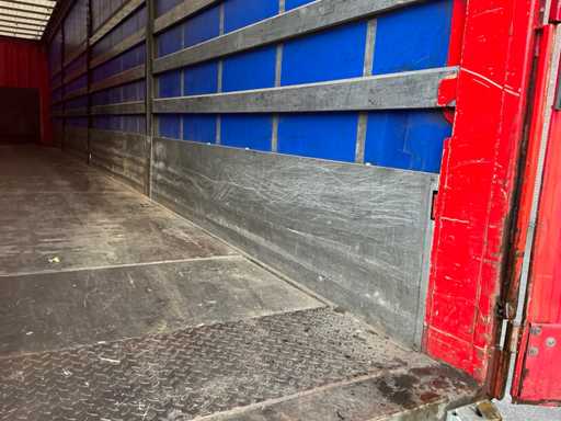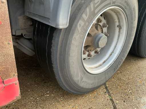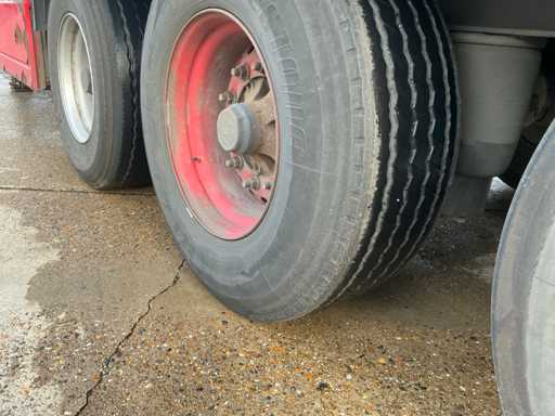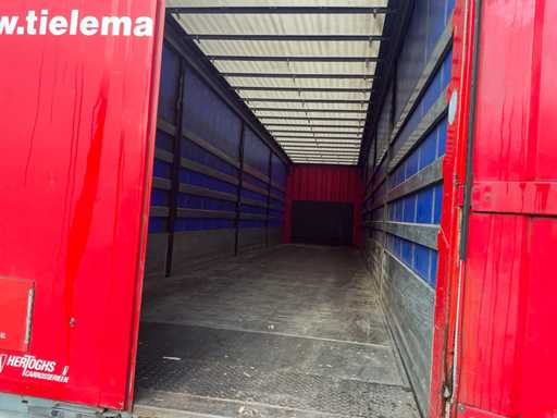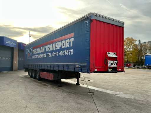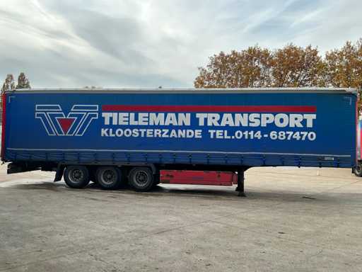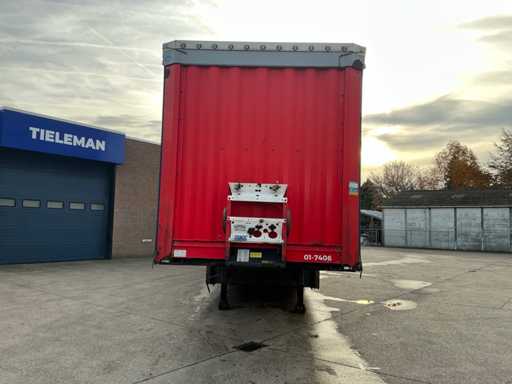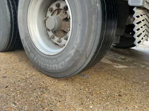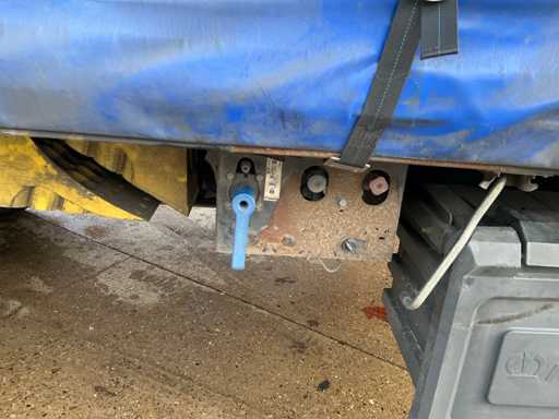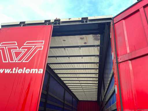Maximale Masse 41.000 kg, Abstandskupplung zum Heck des Fahrzeugs 1200 cm; Radstand 879 cm; Die 1. Achse ist eine Hebeachse; Ausgestattet mit luftgefederten BPW Eco Plus-Achsen, Vorhängen, Aluminiumseiten, Schiebedach und Palettenkasten