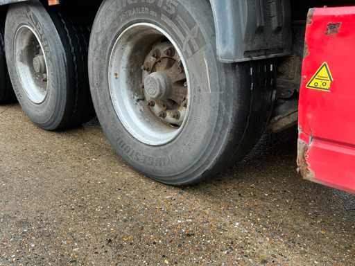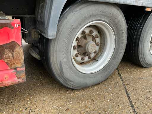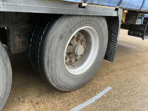 Maximale Masse 41.000 kg, Abstandskupplung zum Heck des Fahrzeugs 1200 cm; Radstand 879 cm; Die 1. Achse ist eine Hebeachse; Ausgestattet mit luftgefederten BPW-Achsen, ist die erste Achse eine Auftriebsachse, Vorhänge, Seitenbretter, Schiebedach und Palettenkasten, Reifengröße 385/65R22.5, ohne den Inhalt.