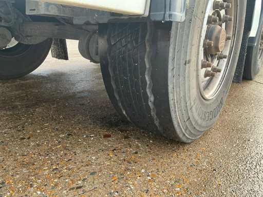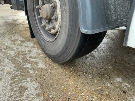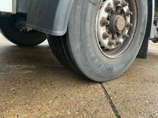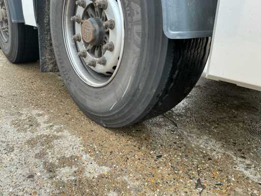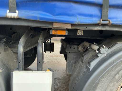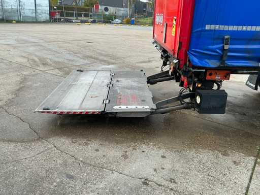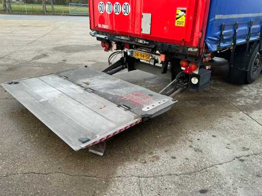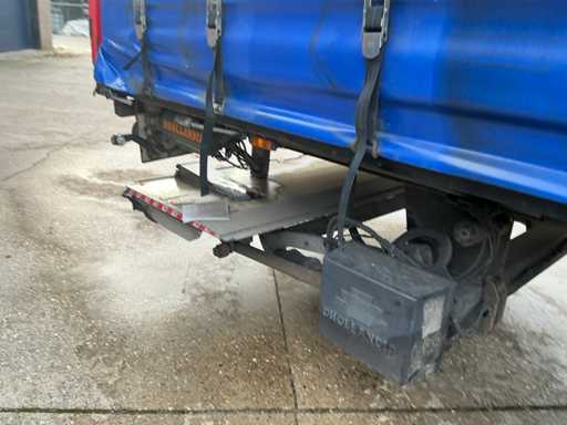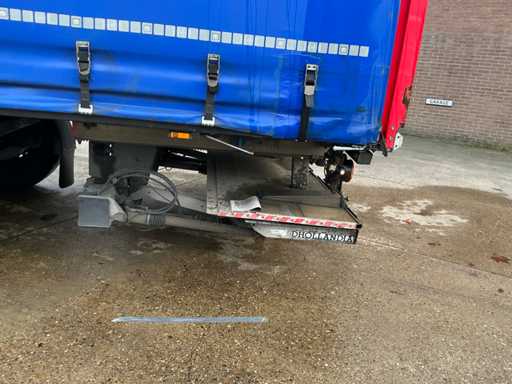 Maximale Masse 32.000 kg, Radstand 653 cm, ausgestattet mit luftgefederten BPW Eco Plus-Achsen, gelenkten Hinterachsenseiten, Dhollandia-Heckklappe und Schiebedach