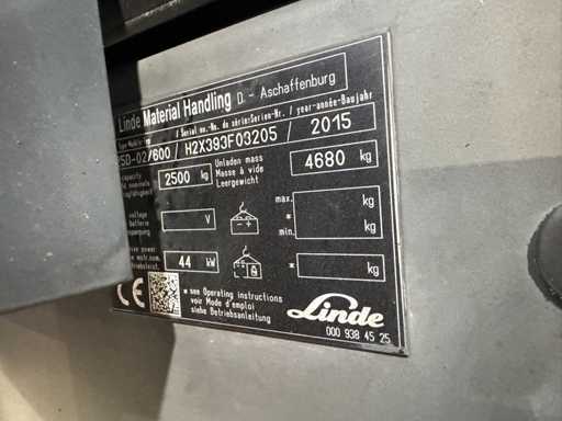 2015 Linde H25D-02 2.500kg 3.+4. Ventil Gabelversteller Dieselstapler Gabelstapler 10.925 Stunden.