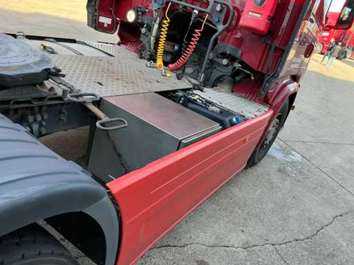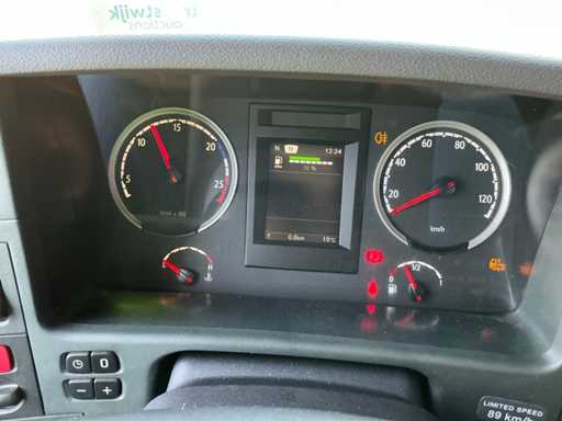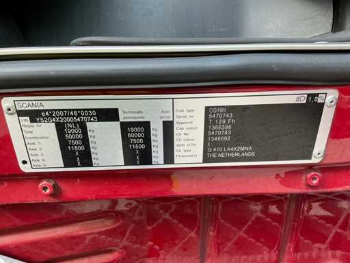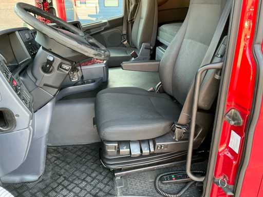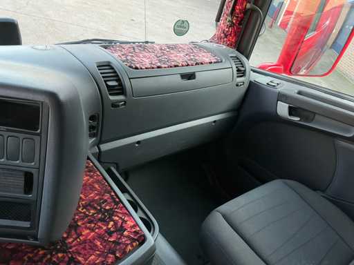Eigengewicht 8058 kg, maximales Fahrzeug 19.000 kg, maximale Masse 50.000 kg. Ausgestattet mit luftgefederter Hinterachse, noch 1000-Liter-Kraftstofftank, Klimaanlage/Klimaanlage, Kühlschrank, Tempomat, 2 Betten,