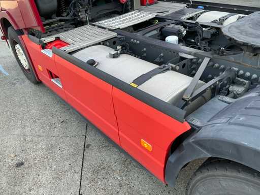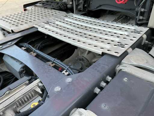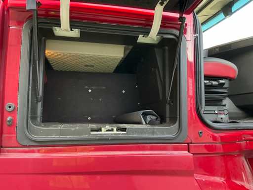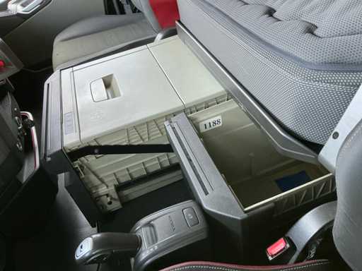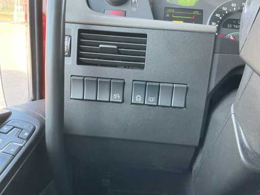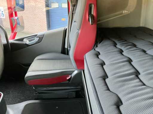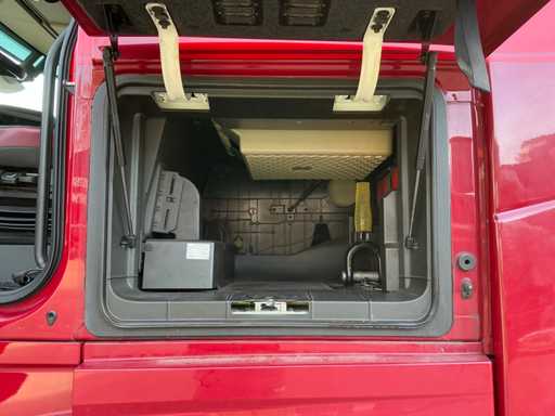 Eigengewicht 8650 kg, maximales Fahrzeuggewicht 21.000 kg, maximale Masse 50.000 kg. Ausgestattet mit luftgefederter Hinterachse, 2 Kraftstofftanks, Klimaanlage/Klimaanlage, Kühlschrank, 2 Betten, Parkheizung, Tempomat, elektrischen Fensterhebern und Spiegeln.