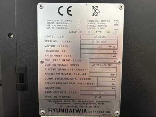 2018 Hyundai WIA L230 LMA CNC-Drehmaschine