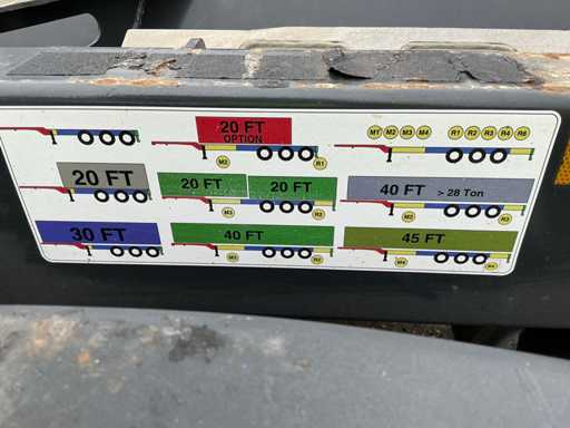 Maximale Masse: 43.000 kg. Radstand 736–945 cm, Abstandsmittelkupplung zu hinten 821–1281 cm, ausgestattet mit luftgefederten BPW-Achsen, die erste Achse ist eine Liftachse, Reifengröße 385/65R22,5