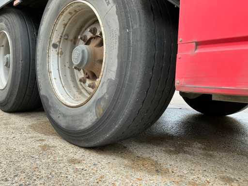 Maximale Masse 41.000 kg, Abstandskupplung zum Heck des Fahrzeugs 1200 cm; Radstand 879 cm; luftgefederte BPW-Achsen, die erste Achse ist eine Hubachse; Ausgestattet mit Vorhängen, Seitenbrettern, Schiebedach und Palettenkiste