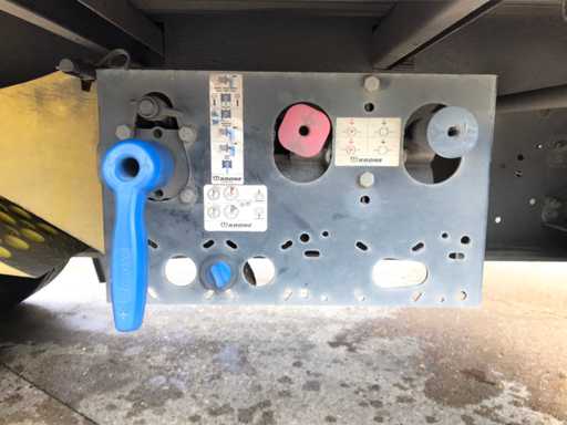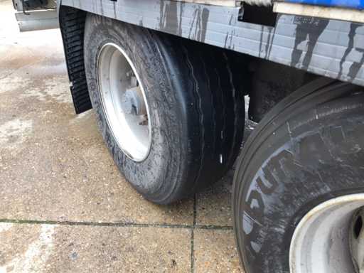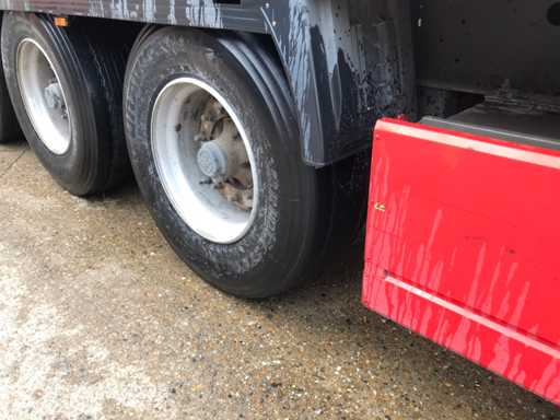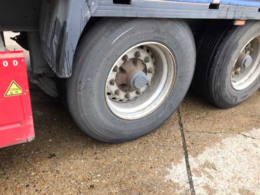 Maximale Masse 41.000 kg, Abstandskupplung zum Heck des Fahrzeugs 1200 cm; Radstand 879 cm; Die 1. Achse ist eine Hebeachse; Ausgestattet mit BPW-Luftfederungsachsen, Vorhängen, Seitentafeln, Schiebedach und Palettenkasten, Reifengröße 385/65R22.5