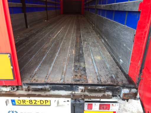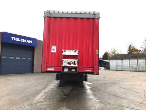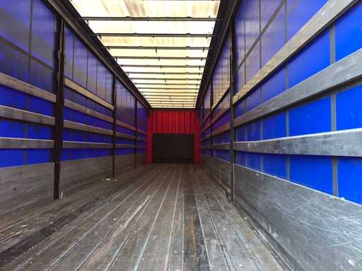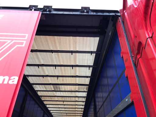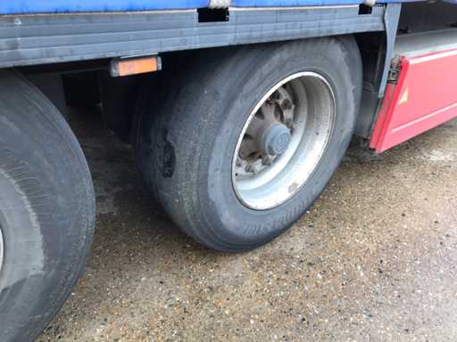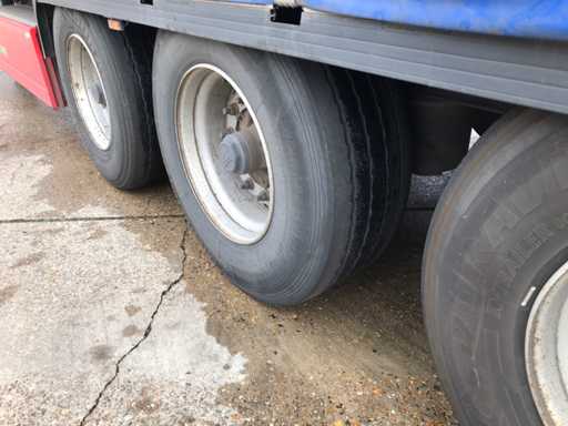 Maximale Masse 41.000 kg, Abstandskupplung zum Heck des Fahrzeugs 1200 cm; Radstand 879 cm; Die 1. Achse ist eine Hebeachse; Ausgestattet mit BPW-Luftfederungsachsen, Vorhängen, Seitentafeln, Schiebedach und Palettenkasten, Reifengröße 385/65R22.5
