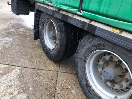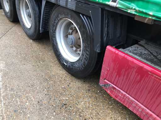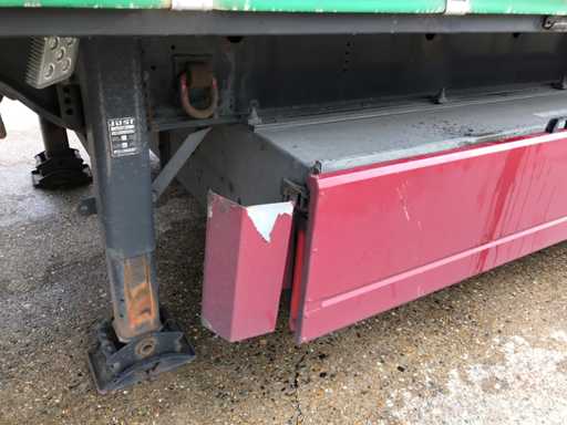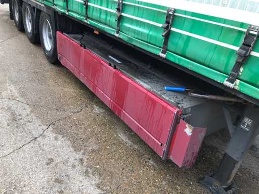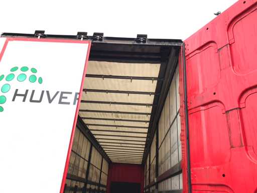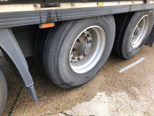 Maximale Masse 41.000 kg, Abstandskupplung zum Heck des Fahrzeugs 1200 cm; Radstand 879 cm; Die 1. Achse ist eine Hebeachse; Ausgestattet mit BPW-Luftfederungsachsen, Vorhängen, Seitendecken, Schiebedach und Palettenkasten, Reifengröße 385/65R22.5, Ferry Eyes