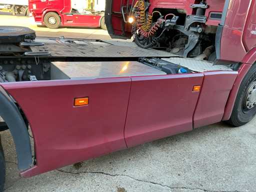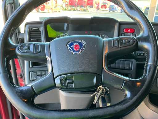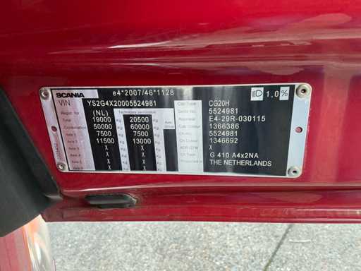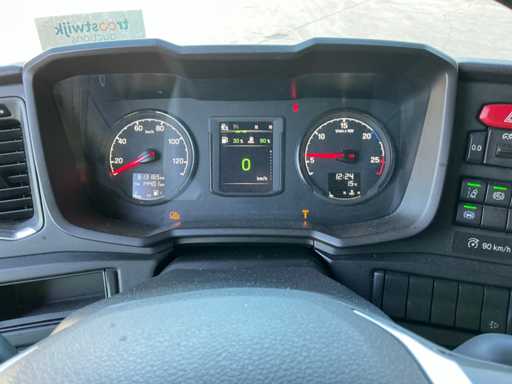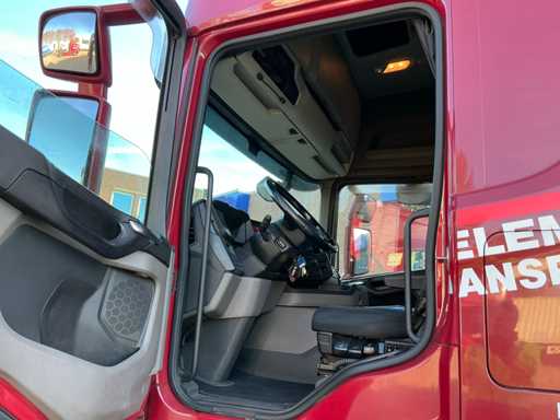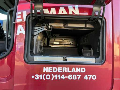 Zulässige maximale Masse 19.000 kg, technische Höchstmasse 20.500 kg, maximale Zusammensetzung 50.000 kg, maximales Anhängerzuggewicht 41.771 kg. Ausgestattet mit luftgefederter Hinterachse, 1000-Liter-Kraftstofftank, Klimaanlage/Klimaanlage, 2 Betten, Audio, elektrischen Fensterhebern und Spiegeln, Parkheizung und Kühlschrank.