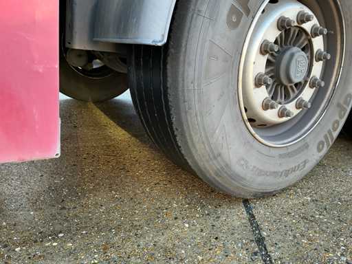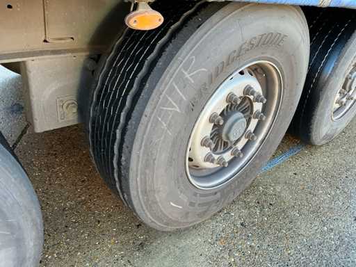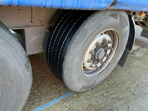 Maximale Masse 42.000 kg, Radstand 901 cm, ausgestattet mit BPW-Luftfederungsachsen, Vorhängen, Sonnendach, Aluminiumseiten und Palettenkasten