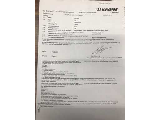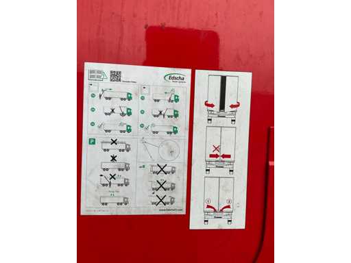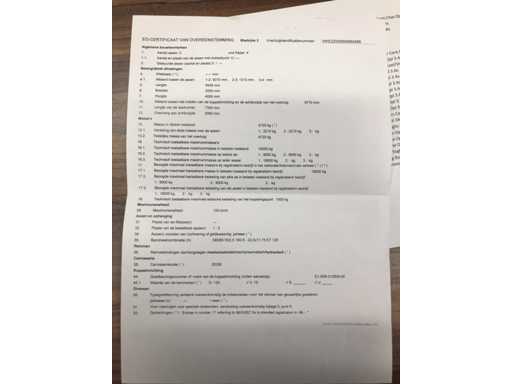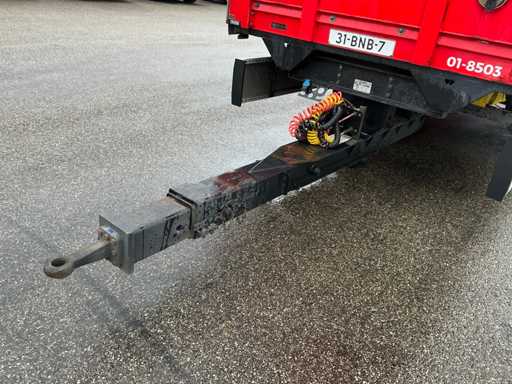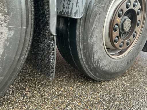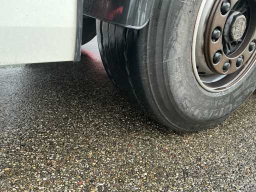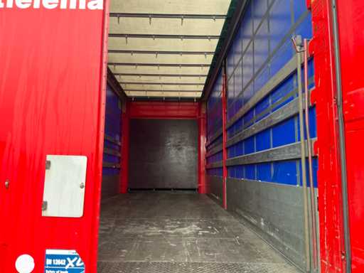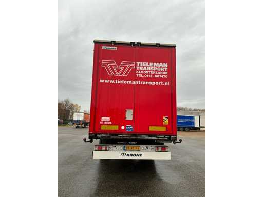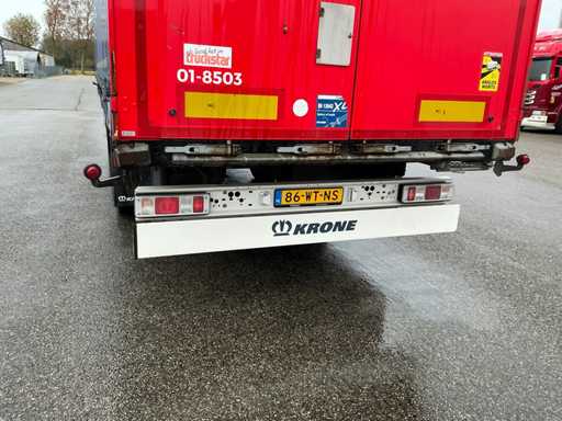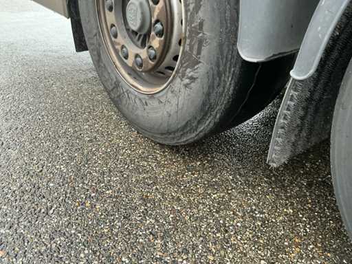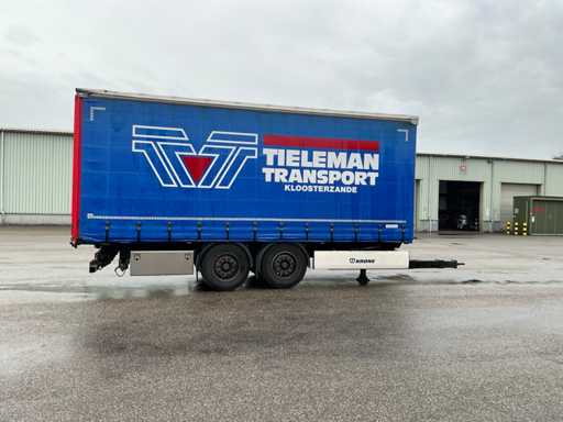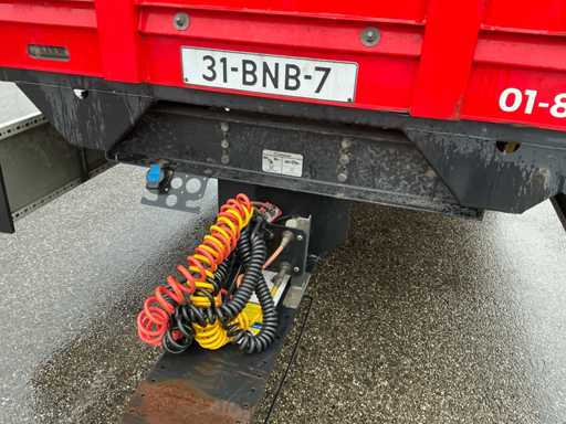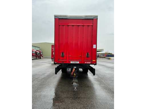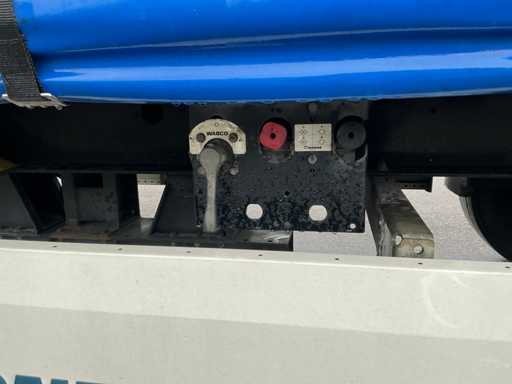 Maximale Masse 18.000 kg, Radstand 638 cm. Ausgestattet mit Schiebedach, luftgefederten BPW-Achsen, 1 vorderem Stützbein, 2 hinteren Stützbeinen, verschiebbaren Planen