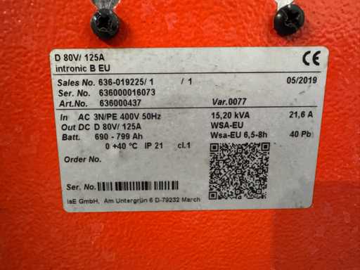 2019 Linde 80V 125Ah 690-799Ah Gabelstapler Ladegerät charger Batterie Akku