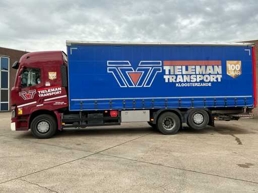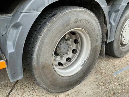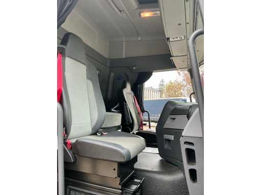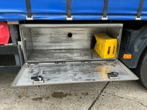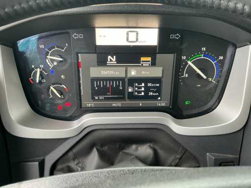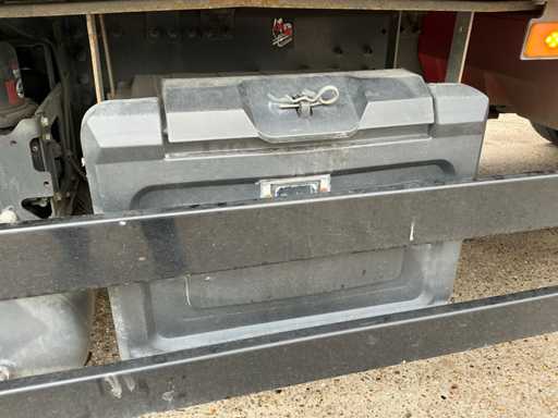 Maximale Gewichtsmasse des Fahrzeugs 11900 kg, maximale Massenmontage 27.000 kg; Radstand 655 cm, Dhollandia-Heckklappe, luftgefederte Hinterachse, Klimaanlage/Klimaanlage, Tempomat, Lenkachse hinten mit Hubfunktion, 1 Bett, Kühlschrank, luftgefederter Fahrersitz, Dach und Seiten mit Vorhängen, 1500W AC/DC-Wechselmotor