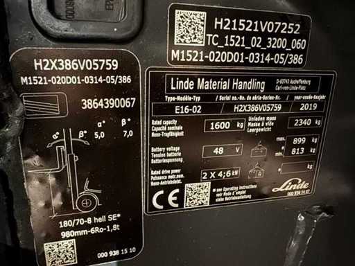 2019 Service+UVV 02/2027 Linde E16-02 EVO 1.600kg Duplex Freihub Gabelstapler Elektrostapler 3.562 Stunden