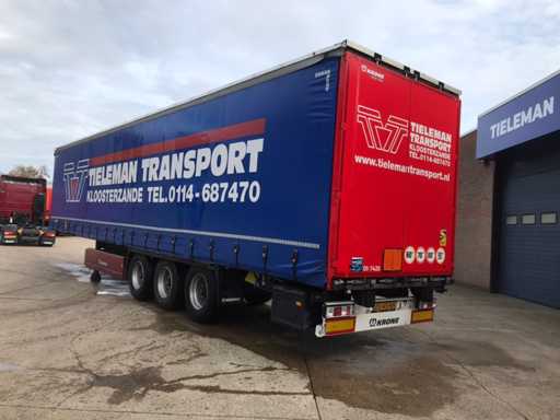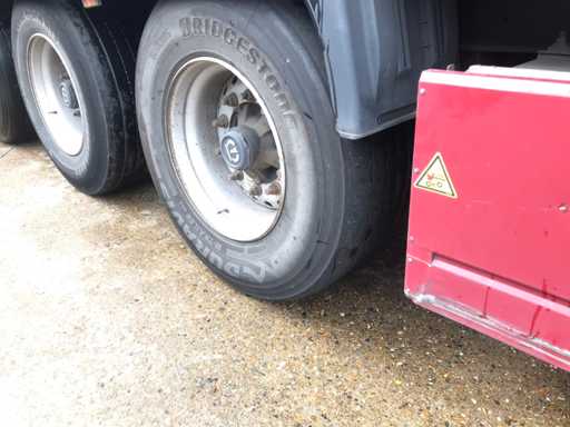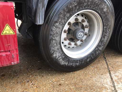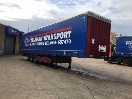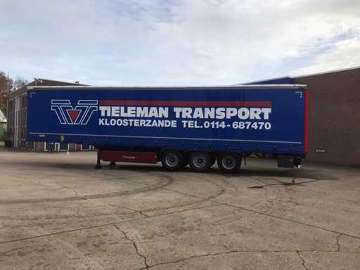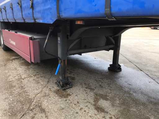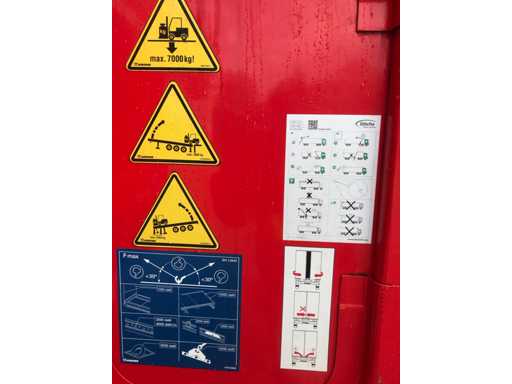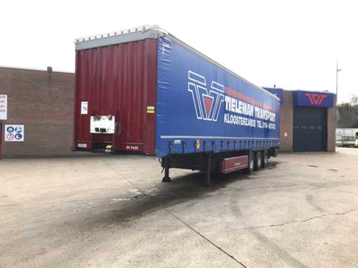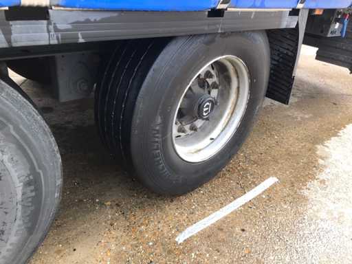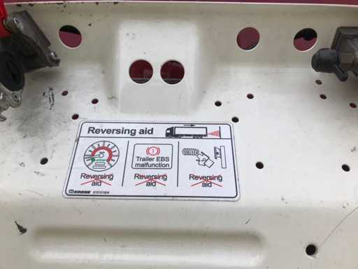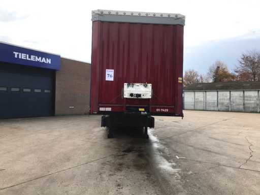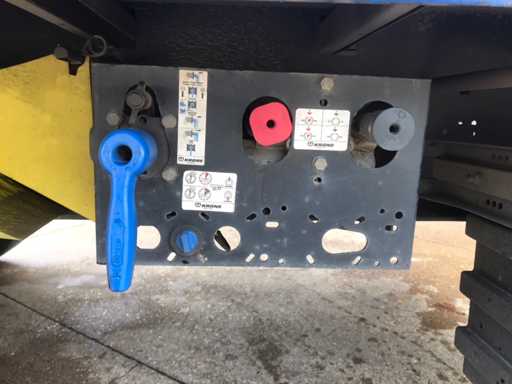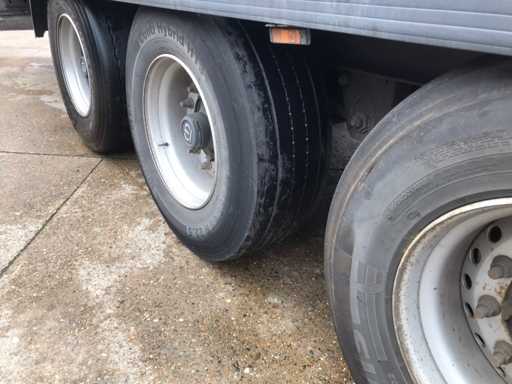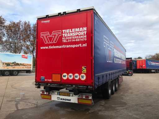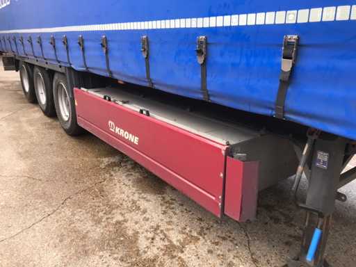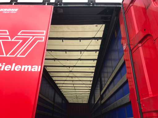 Maximale Masse 41.000 kg, Abstandskupplung zum Heck des Fahrzeugs 1200 cm; Radstand 879 cm; Die 1. Achse ist eine Hebeachse; Ausgestattet mit Krone-Luftfederungsachsen, Vorhängen, Seitenplanken, Schiebedach und Palettenbox, Reifengröße 385/65R22.5