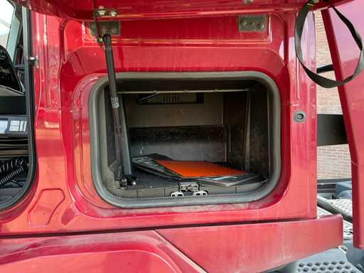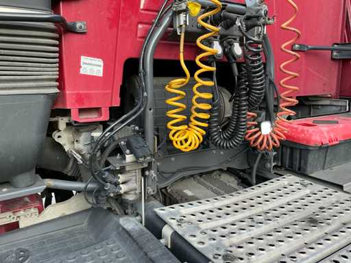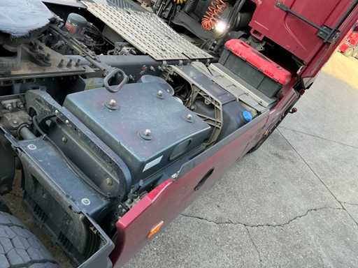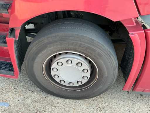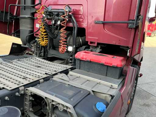 Legales maximales Fahrzeug 19.000 kg, technisches maximales Fahrzeug 20.500 kg, maximale Massenmontage 50.000 kg, maximales Anhängerzuggewicht 41.975 kg. ausgestattet mit Trommelkompressor, geeignet für den Massentransport, luftgehängte Hinterachse, Klimaanlage/Klimaanlage, Tempomat, Midland 27mc, Renault Audio, Kühlschrank