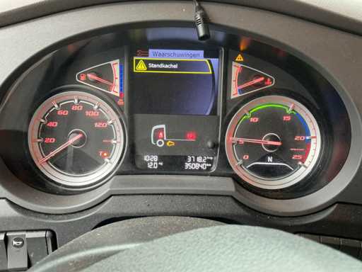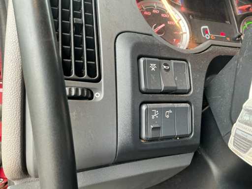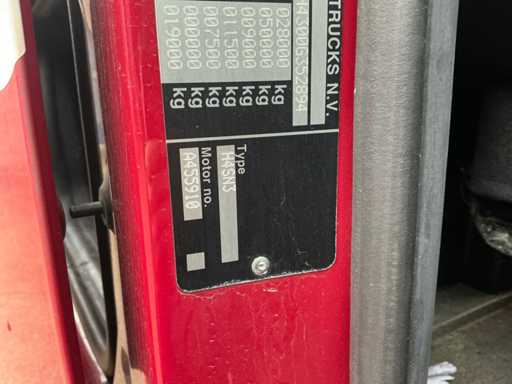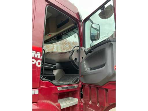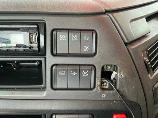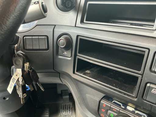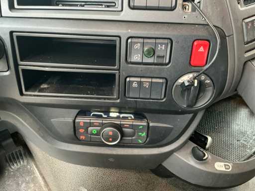 Technisches maximales Fahrzeug 28.000 kg, maximale Massenmontage 50.000 kg; Radstand 670 cm; Die dritte Achse ist die Auftriebsachse; Dhollandia DHSMV .20 einklappbare Heckklappe, doppelter Kraftstofftank, Hinterachse mit Luftfederung, Krone-Kabinett, Klimaanlage/Klimaanlage, Deckenklimaanlage, Parkheizung (Defekt), 2 Betten, Kühlschrank, Spurverlassenswarnung, President 27mc, verschiedene Fehlfunktionen