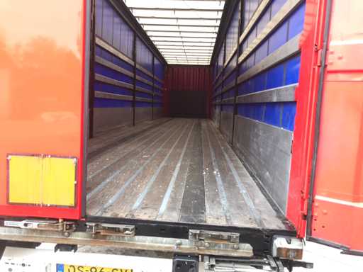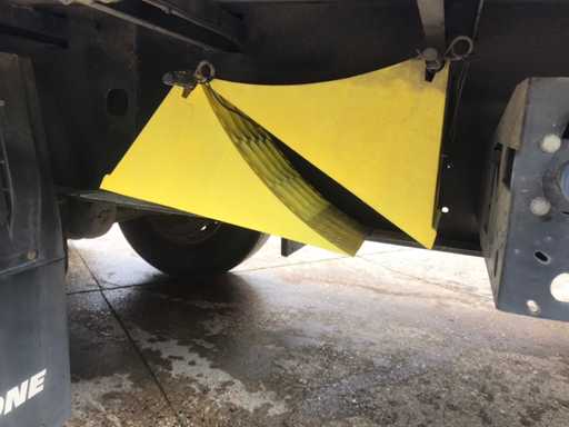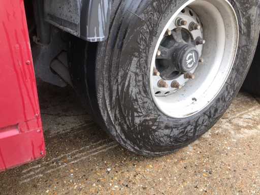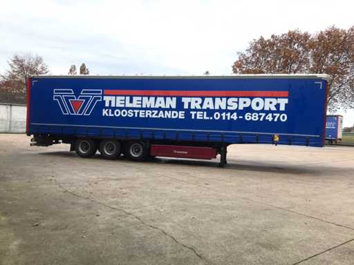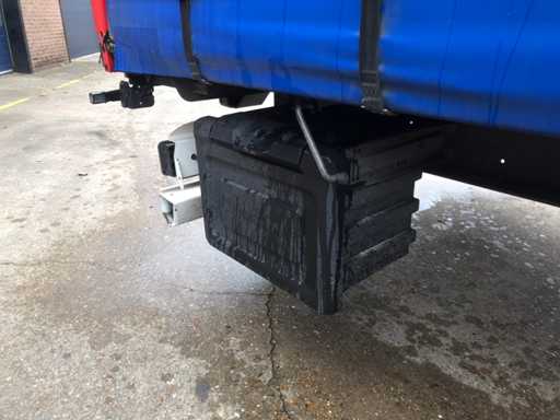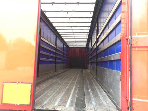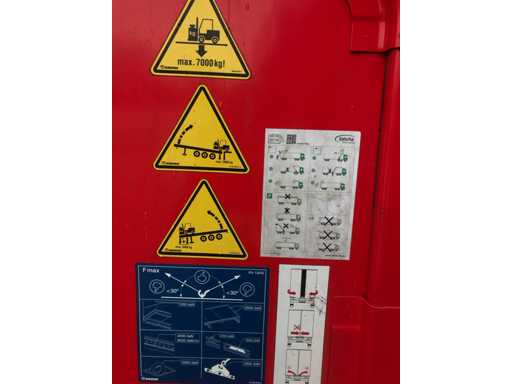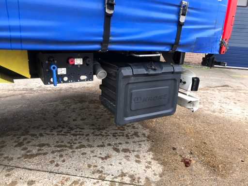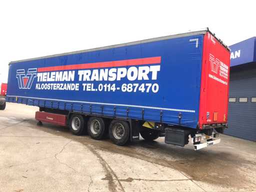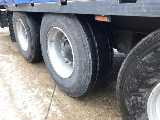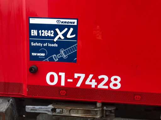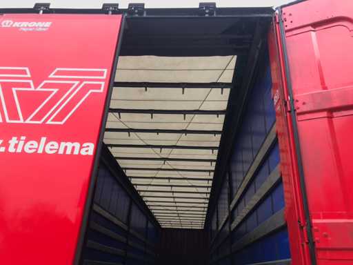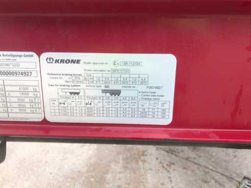 Maximale Masse 41.000 kg, Abstandskupplung zum Heck des Fahrzeugs 1200 cm; Radstand 879 cm; Die 1. Achse ist eine Hebeachse; Ausgestattet mit Krone-Luftfederungsachsen, Vorhängen, Seitenplanken, Schiebedach und Palettenbox, Reifengröße 385/65R22.5