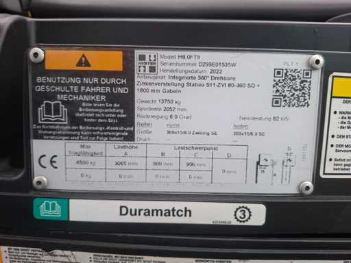 Leistung: 82 kW, Spurbreite: 2052 mm, Überdruckfiltersystem von Seka, Typ: SBA80. Parksensoren hinten. Fahrgeschwindigkeit: 21,4 km/h