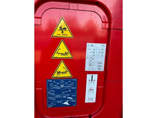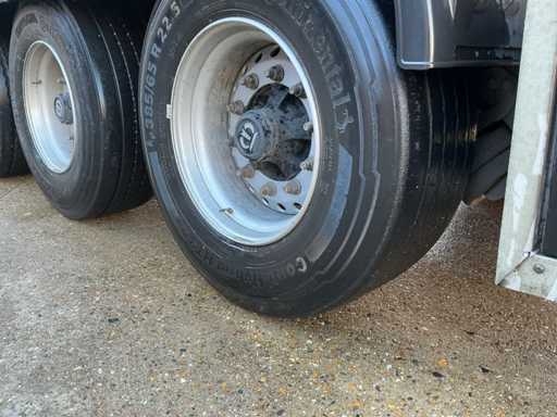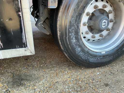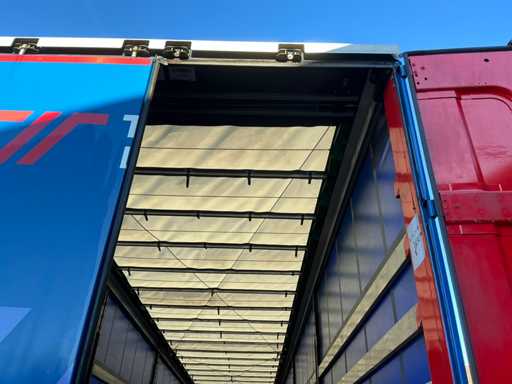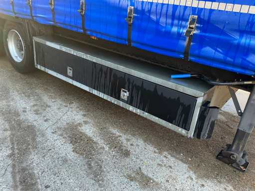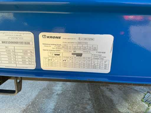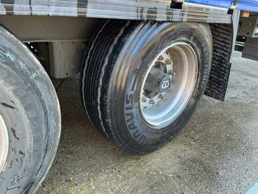 Maximale Masse 41.000 kg, Abstandskupplung zum Heck des Fahrzeugs 1200 cm; Radstand 879 cm; Krone-Luftfederungsachsen, die erste Achse ist die Hubachse; Ausgestattet mit Vorhängen, Aluminium-Seitenplatten, Schiebedach und Palettenkiste