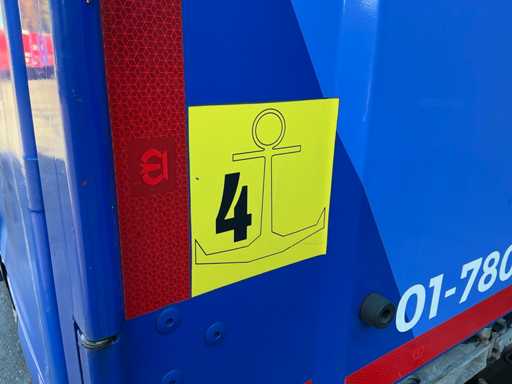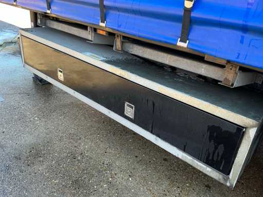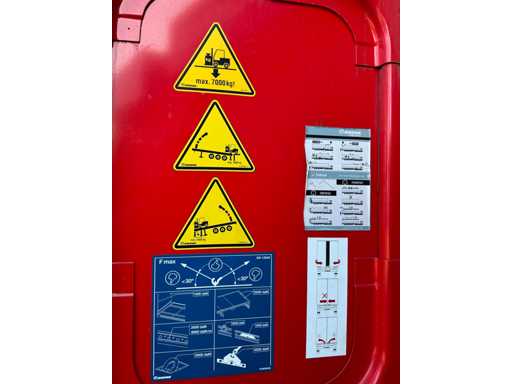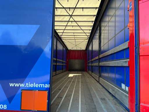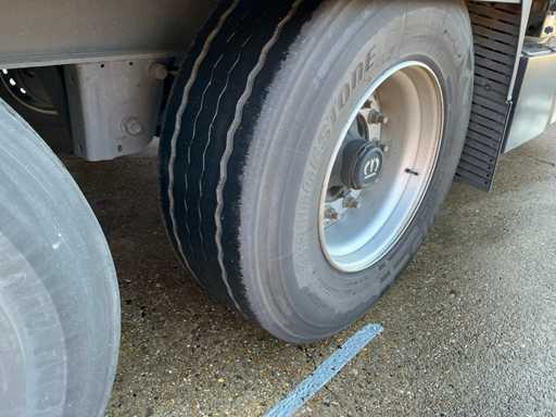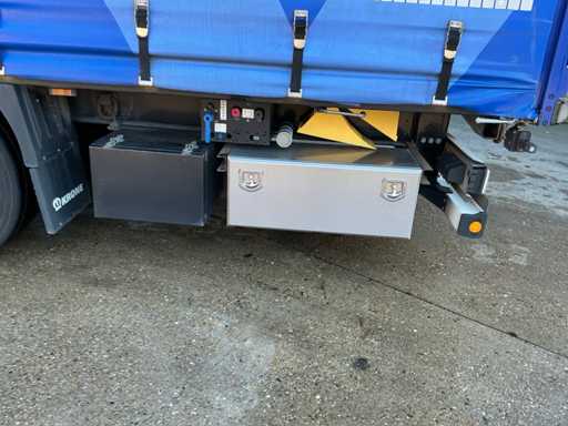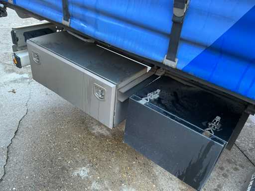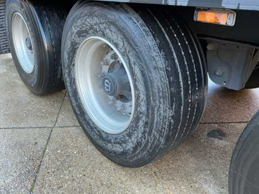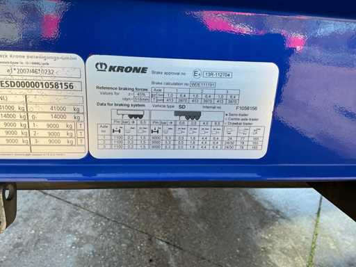 Maximale Masse 41.000 kg, Abstandskupplung zum Heck des Fahrzeugs 1200 cm; Radstand 879 cm; Krone-Luftfederungsachsen, die erste Achse ist die Hubachse; Ausgestattet mit Vorhängen, Aluminiumseiten, Schiebedach und Palettenkiste, Fährenaugen