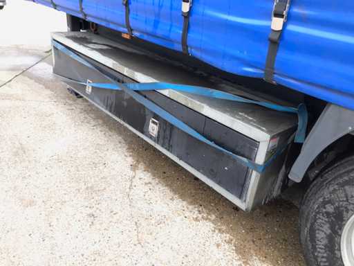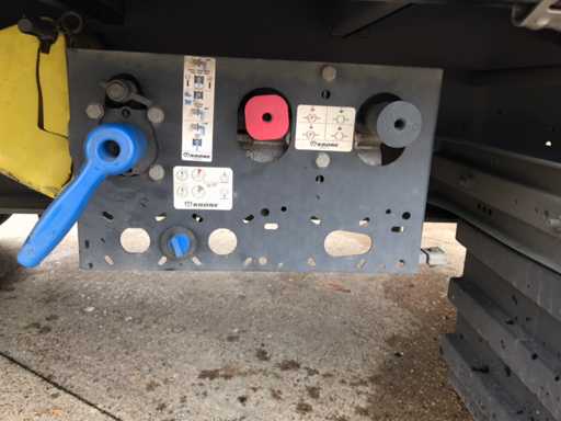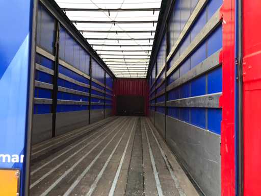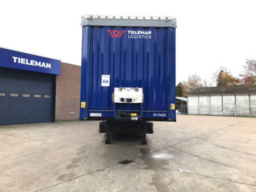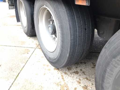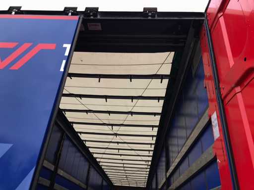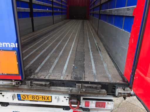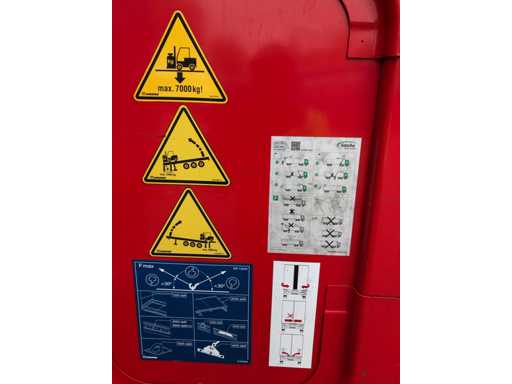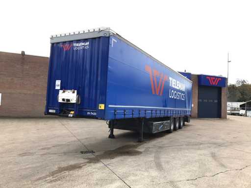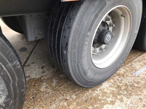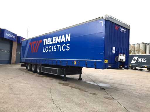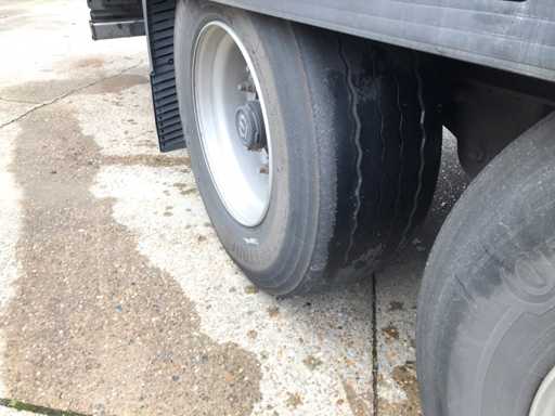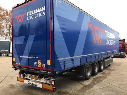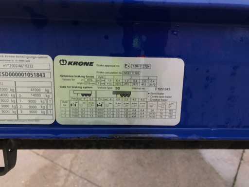 Maximale Masse 41.000 kg, Abstandskupplung zum Heck des Fahrzeugs 1200 cm; Radstand 879 cm; Die 1. Achse ist eine Hebeachse; Ausgestattet mit Krone-Luftfederungsachsen, Vorhängen, Seitendecken, Schiebedach und Palettenkasten, Reifengröße 385/65R22.5, Fährenaugen
