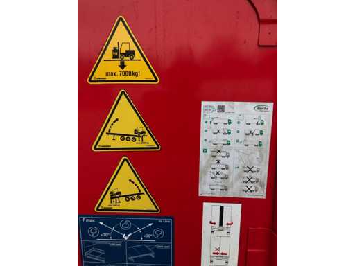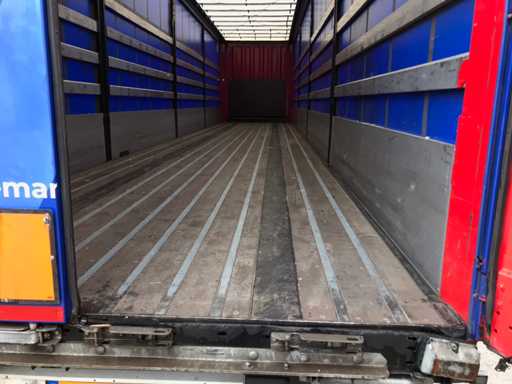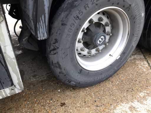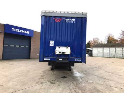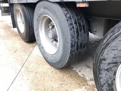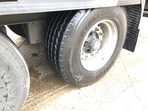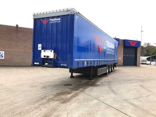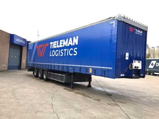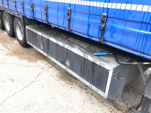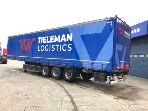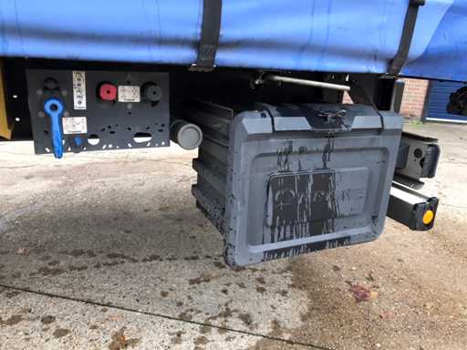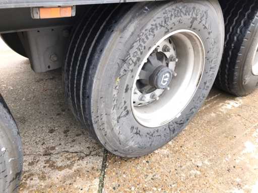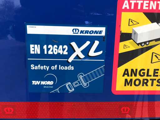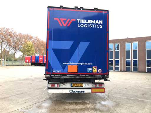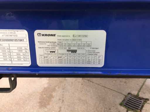 Maximale Masse 41.000 kg, Abstandskupplung zum Heck des Fahrzeugs 1200 cm; Radstand 879 cm; Die 1. Achse ist eine Hebeachse; Ausgestattet mit Krone-Luftfederungsachsen, Vorhängen, Seitenplanken, Schiebedach und Palettenbox, Reifengröße 385/65R22.5