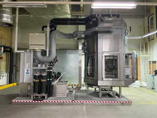 6 Reinigungsstationen, Reinigungsmittel VE-Wasser, Leistungsaufnahme 45 kW, Füllmenge ca. 1200 l, Aufspannfläche Reinigungsstationen ca. 500x1000 mm, inkl. Wasseraufbereitung, Auffangwanne und Steuerung