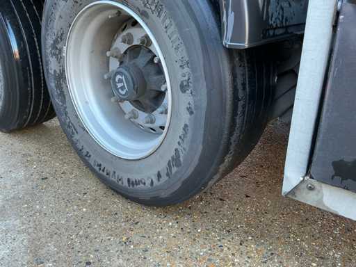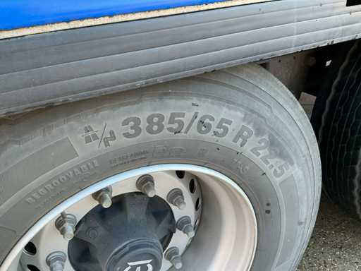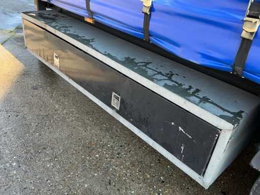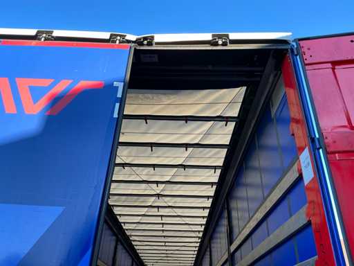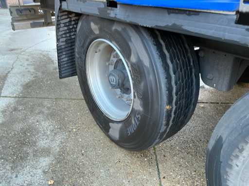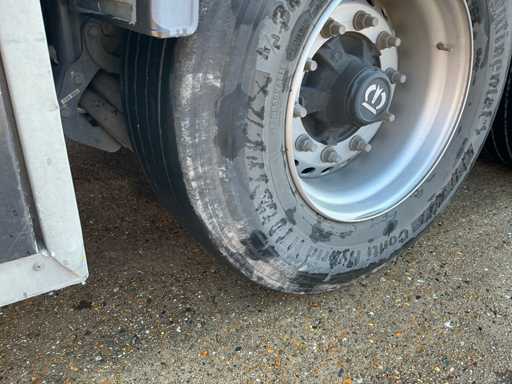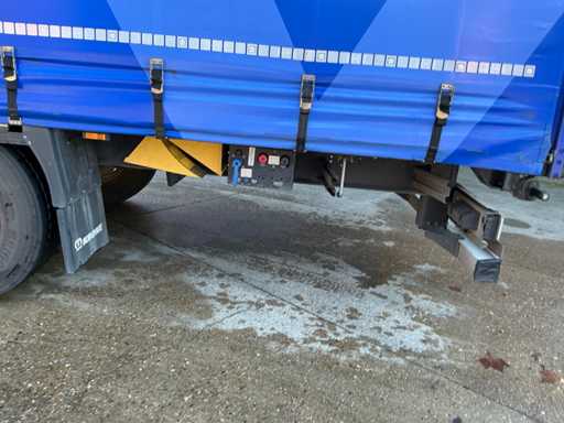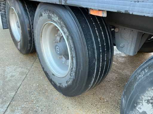 Maximale Masse 41.000 kg, Radstand 879 cm, ausgestattet mit Schiebedach, Sideboards und Palettenkasten