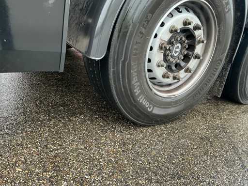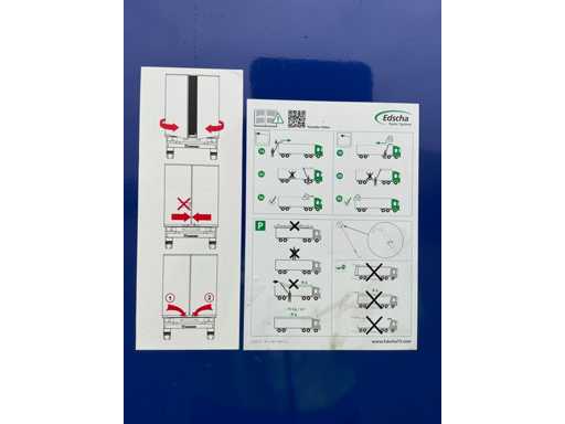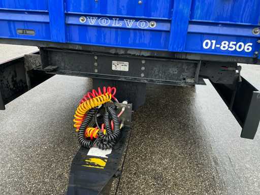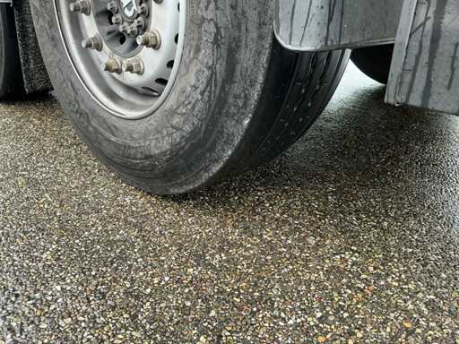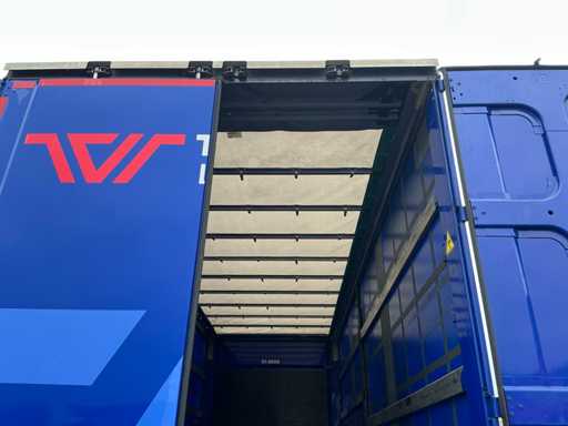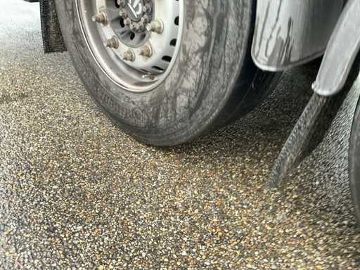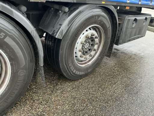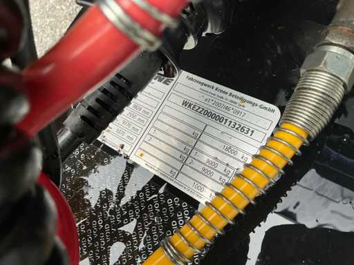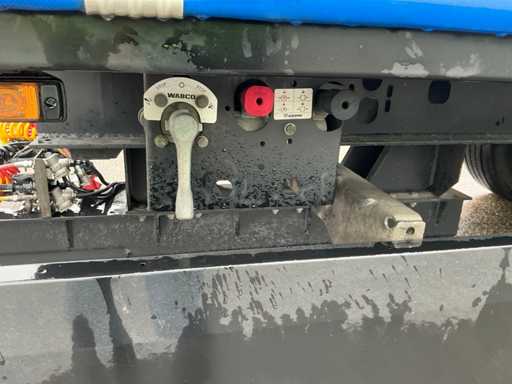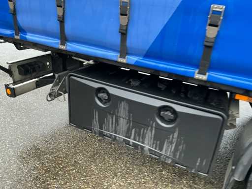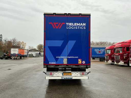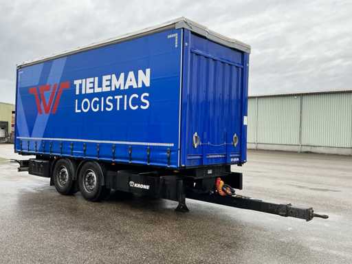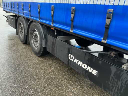 Maximale Masse 18.000 kg, TÜV-Ablaufdatum 18.09.2026, ausgestattet mit luftgefederten Krone-Achsen, Vorhängen, Schiebedach, 1 vorderem Stützbein, 2 hinteren Trägerbeinen