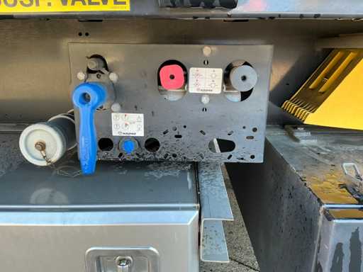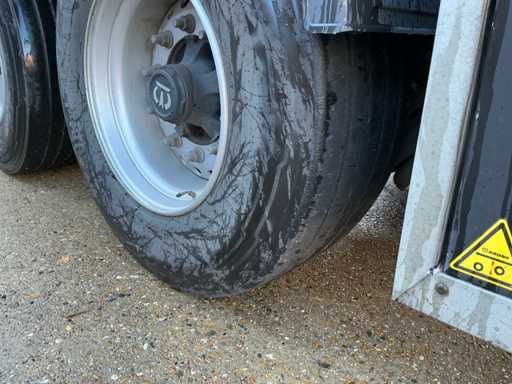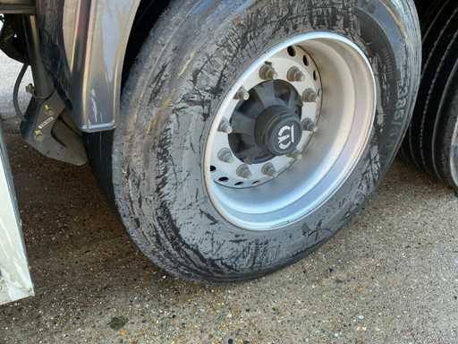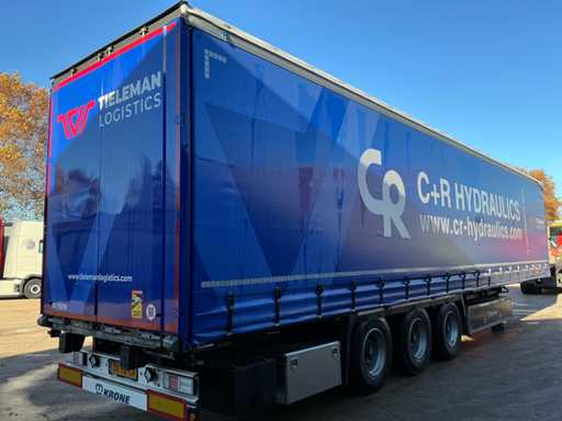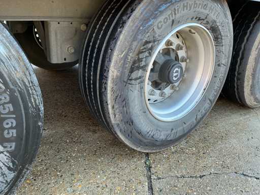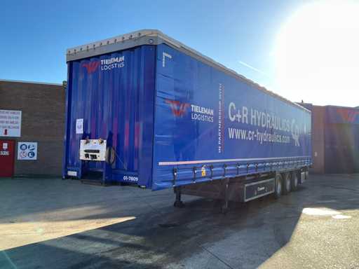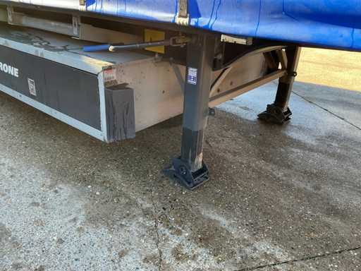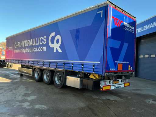 Maximale Masse 41.000 kg, Abstandskupplung zum Heck des Fahrzeugs 1200 cm; Radstand 879 cm; Krone-Luftfederungsachsen, die erste Achse ist die Hubachse; Ausgestattet mit Vorhängen, Aluminium-Seitenplatten, Schiebedach und Palettenkiste