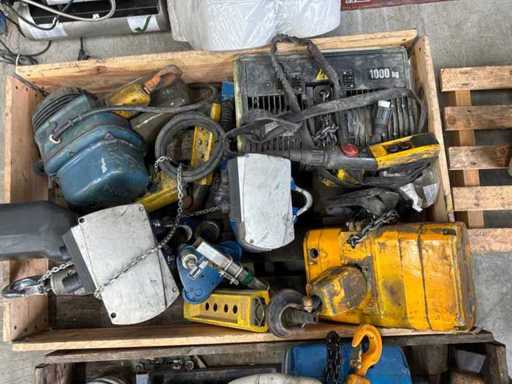 Dazu gehören: Kettenhebe, Fernbedienung, Trolley.