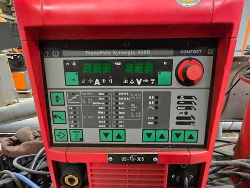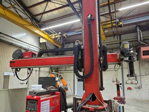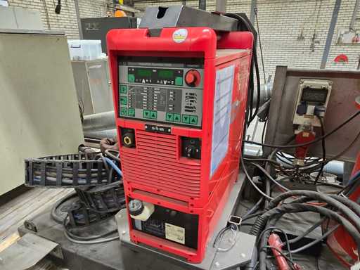 ausgestattet mit einer Fronius Transpuls Synnergic 4000 Schweißquelle und separater Steuerung