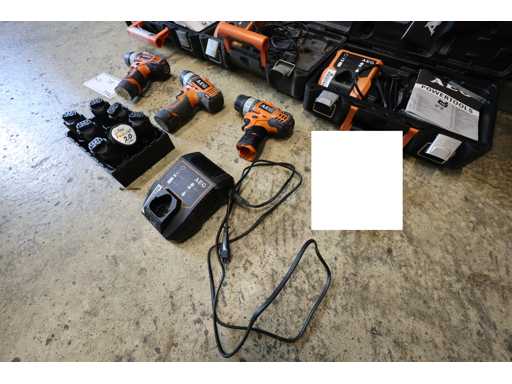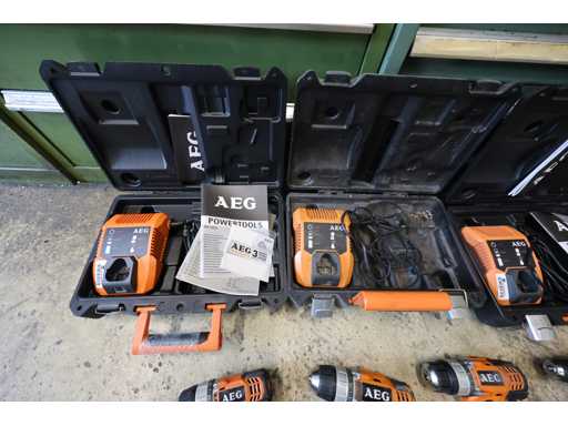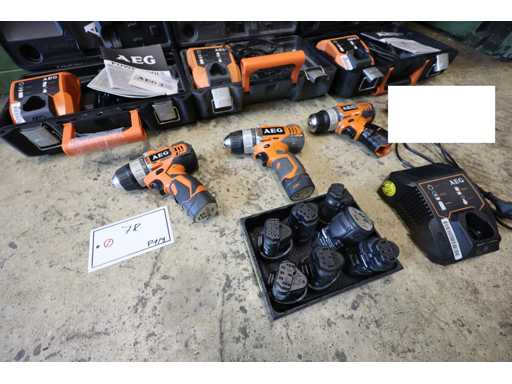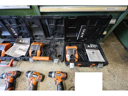 3 x AEG Akkuschrauber, 4 mal Ladestation AEG, 9 Akkus