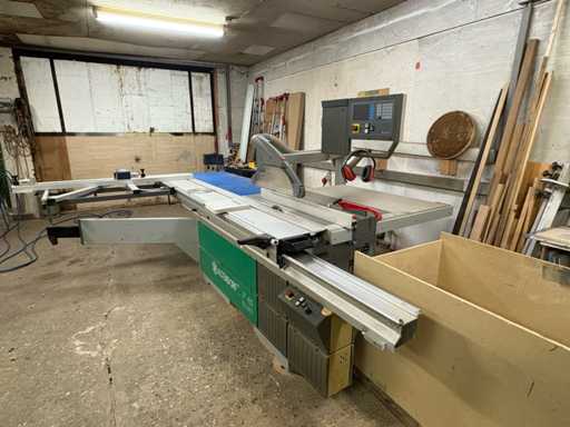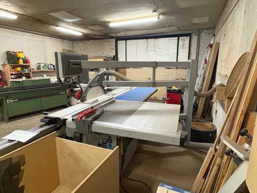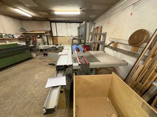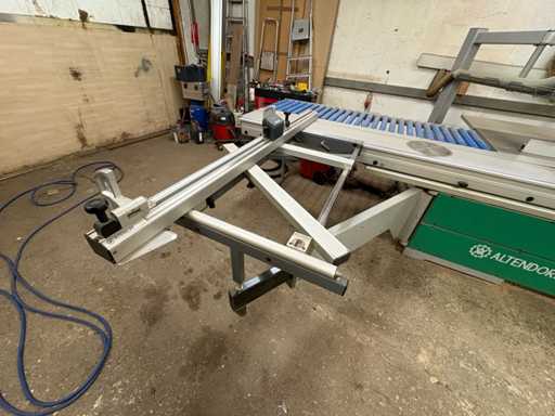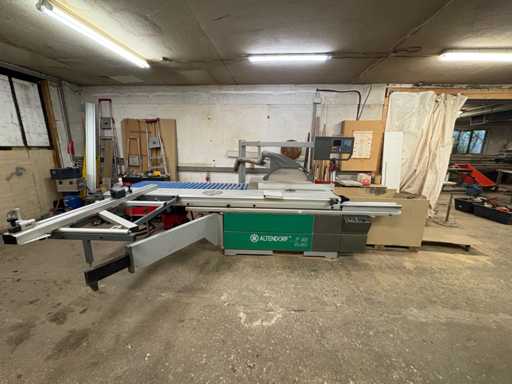 Altendorf F45 Elmo Formatkreissäge mit ELMO-Steuerung, großem Schiebetisch, Parallelanschlag, CE-Kennzeichnung. Präzise, robust, einsatzbereit.