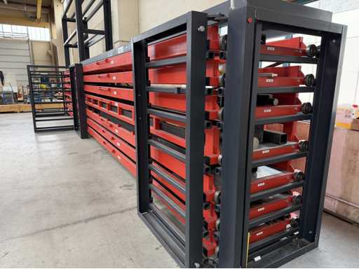 Regalgesamtlast:14000kg, Traglast Kassette:2000kg, insgesamt sieben Kassetten;ACHTUNG die zusehenden Inhalte sind nicht mit im Lieferumfang enthalten und werden separat versteigert