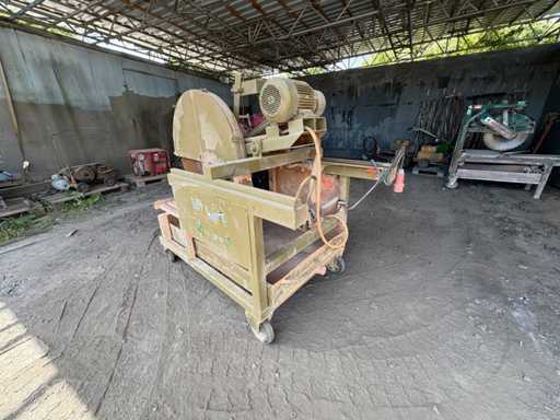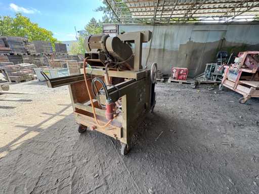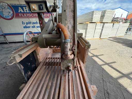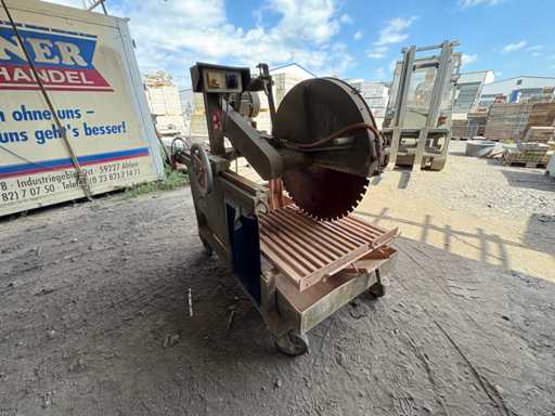 Die Maschine ist fahrbar, mit großem Trennblatt ausgestattet und bestens geeignet für den Zuschnitt von Beton, Naturstein und großformatigen Baustoffen.