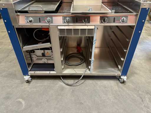 Die Cooking-Station befindet sich in einem gepflegten und technisch einwandfreien Zustand. Leichte Gebrauchsspuren am Gehäuse sind vorhanden, beeinträchtigen jedoch weder Funktion noch Optik. Ideal geeignet für den professionellen Einsatz in Kantinen, Cateringbetrieben, Hotels oder bei Events – sofort einsatzbereit.