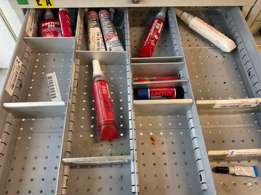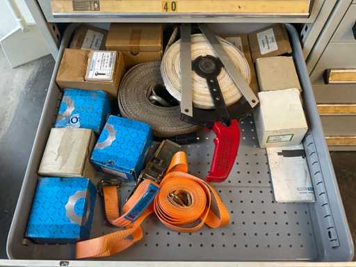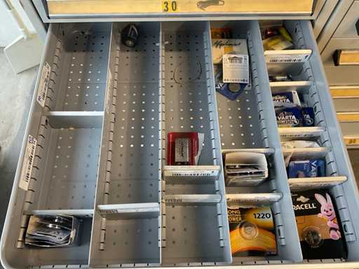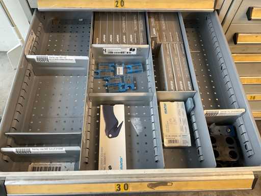 1x 7-Schubladen (600 mm breit) und 1x 8-Schubladen (750 mm breit) mit Inhalt und Holzdecke