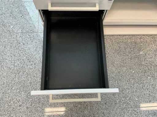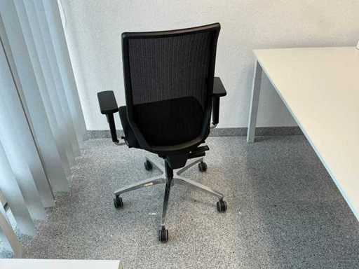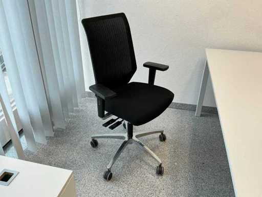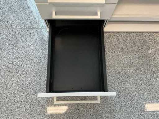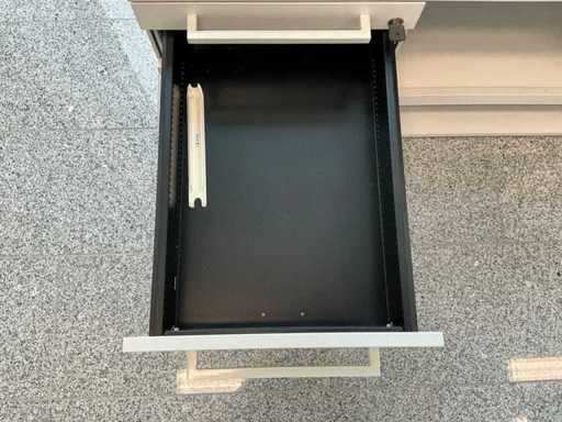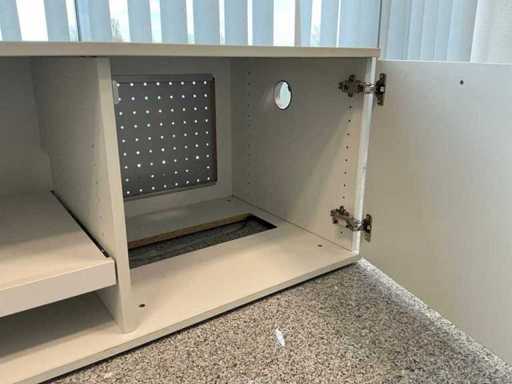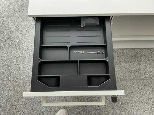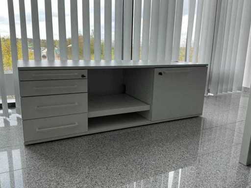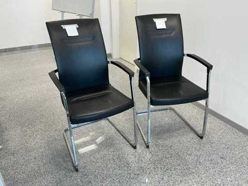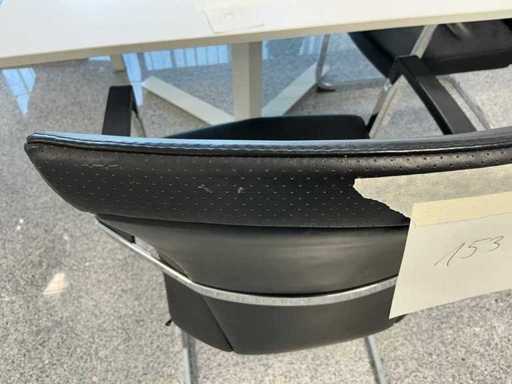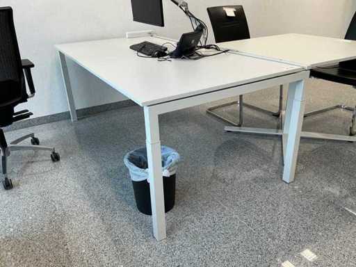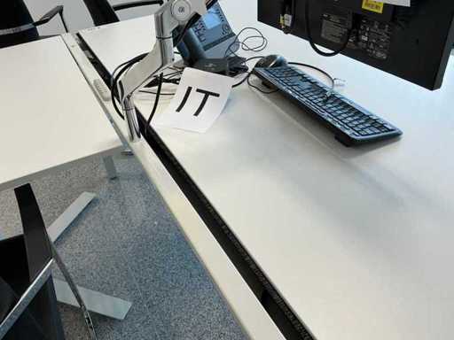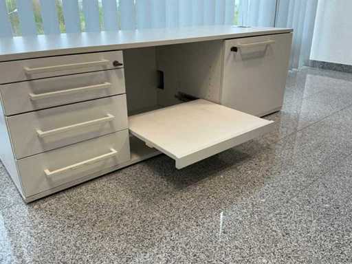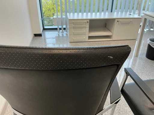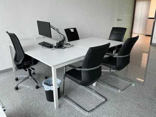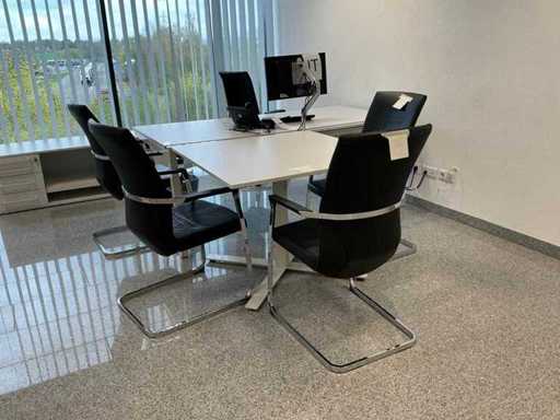 Inklusive Tisch 100 x 100 x 73 cm LxBxH, Schreibtisch 200 x 102 x 76 cm LxBxH Höhenverstellbar, Bürostuhl der Marke Douphin Höhenverstellbar und Armlehne verstellbar, Ohne Bildschirm Maus Tastatur Telefon, 4 Leder Schwingstühle, 1 Sideboard 160 x 60 x 52cm LxBxH,