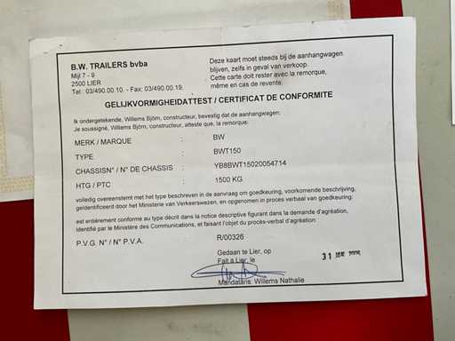 Eine Zustellungsanfrage kann über http://www.auctionlogistics.nl erhalten werden.