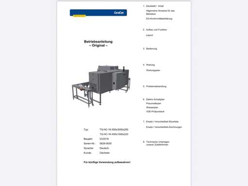 • Volle CE-Dokumentation vorhanden (inkl. Ersatzteilliste, Layoutpläne, Bedienungsanleitung)