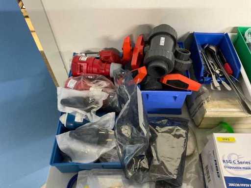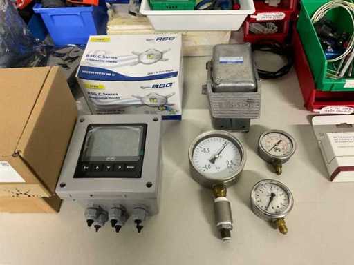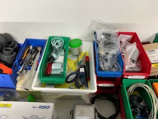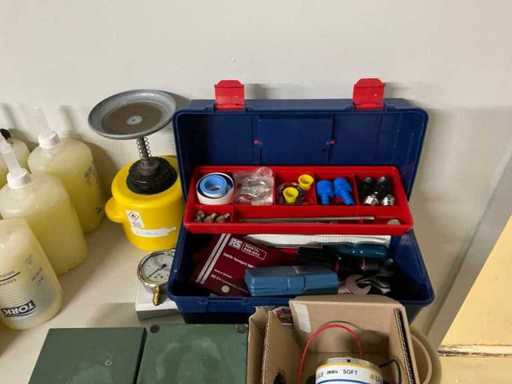 Bestehend aus unter anderem: Druckmessgeräten, elektrischen Verbindungen, Kabeln, Leitern, Pumpen, Teilen, Papierschneidern, Seife, Papier.